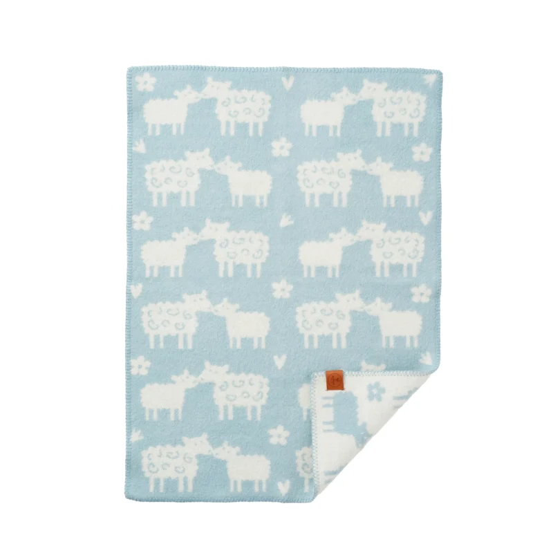 Bää barnfilt är designad av Bengt & Lotta och tillverkad i 100% lammull. Filten med det söta mönstret värmer både in och utsida och passar perfekt att ha med sig vid barnvagnspromenader.