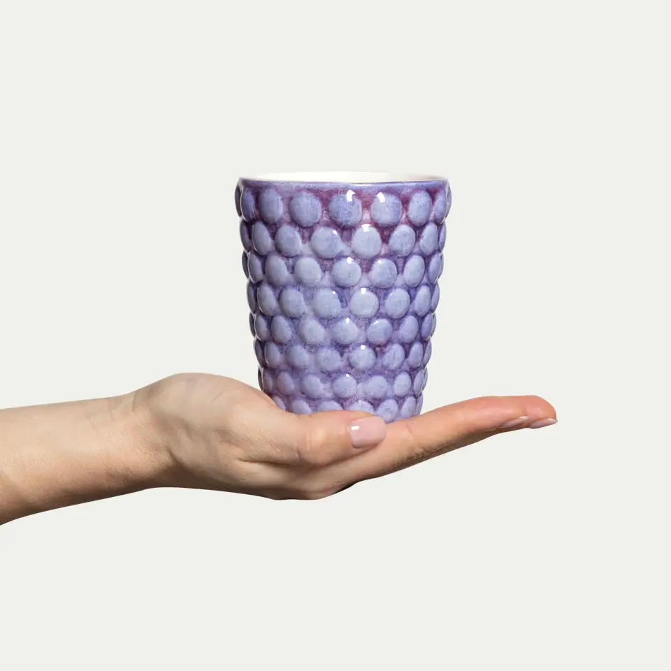 Denna charmiga och vackra mugg från Mateus Bubbles-kollektion finns tillgänglig i 13 olika färger som passar perfekt att mixa och matcha med varandra. Kollektionens ikoniska design är inspirerad av modevärldens traditionella prickmönster och har ett modernt och lekfullt uttryck som sprudlar av energi. Varje produkt är handgjord och handmålad i Portugal, vilket ger en unik charm där varje kopp är unik.