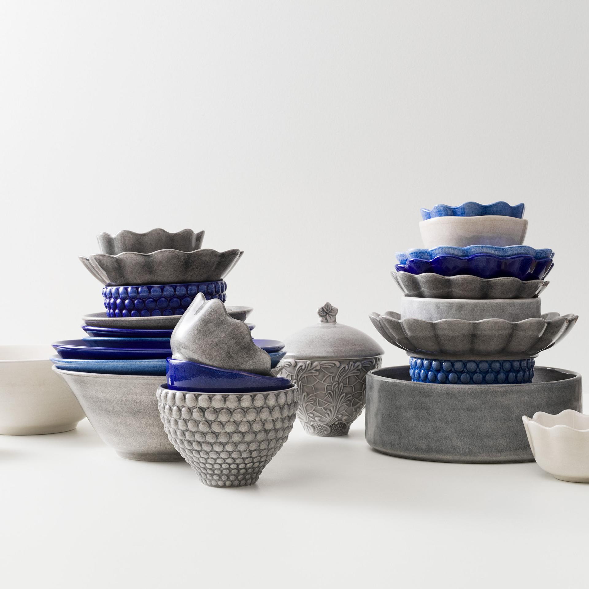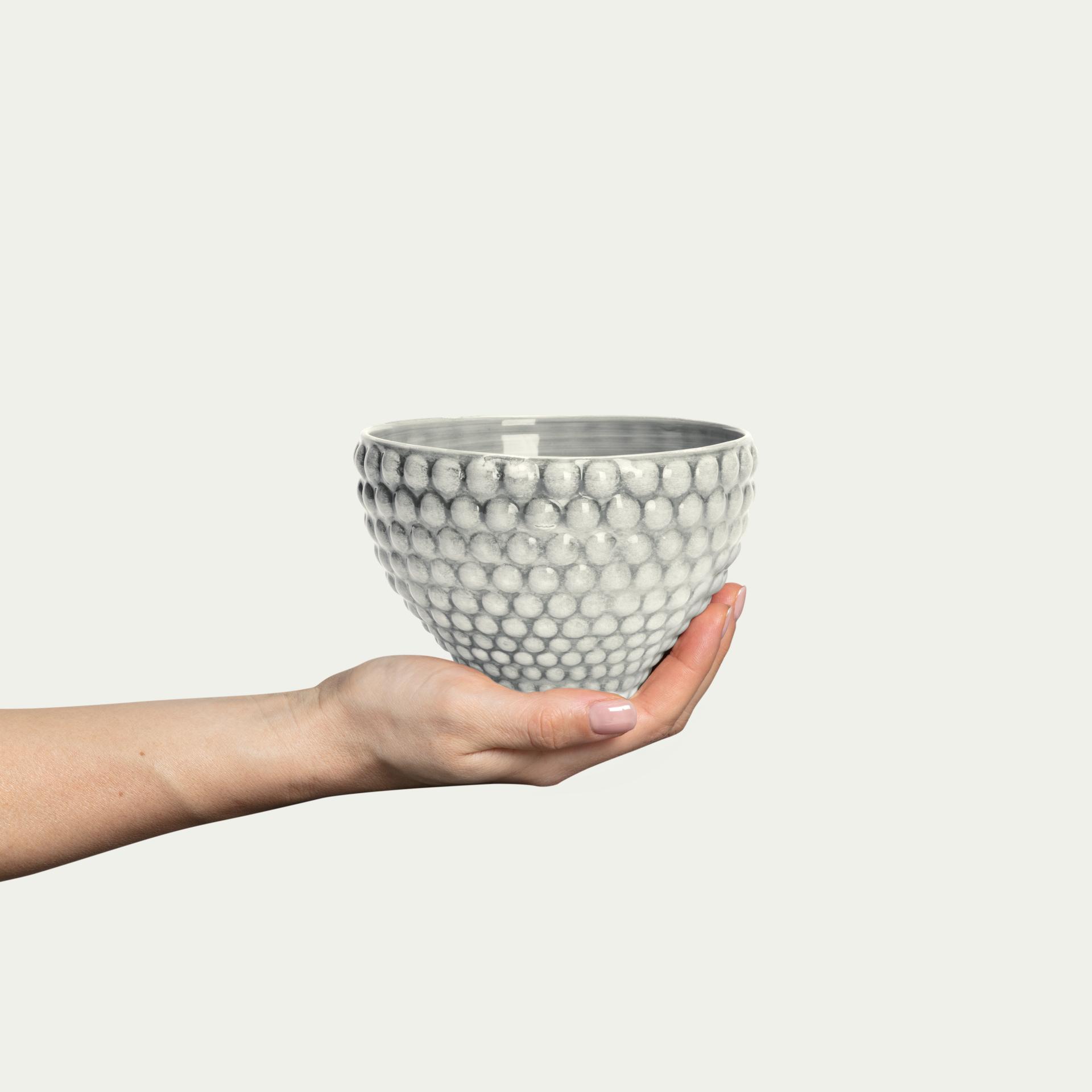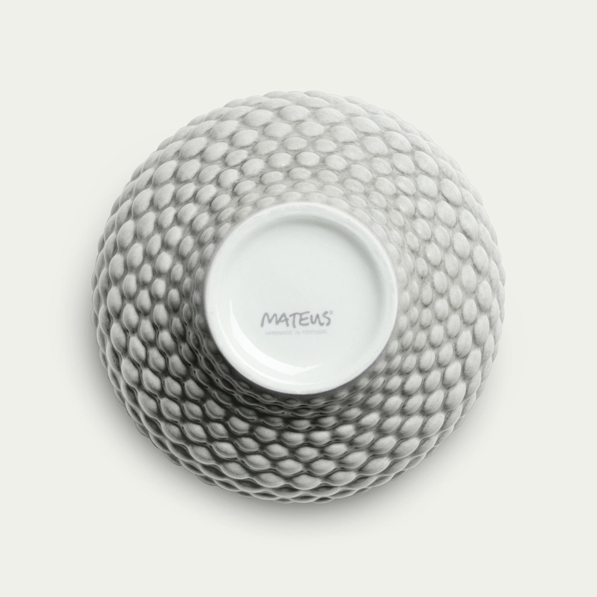 Denna stora skål från Mateus Bubbles-kollektion har en charmig organisk design med en glaserad yta som täcks av bubblor. Varje produkt är handgjord och handmålad av portugisiska keramiker vilket gör att alla skålar får sina egna unika detaljer. Den populära Bubbles-kollektionen kombinerar mode med keramiskt hantverk och har en design som hämtat inspiration från modevärldens klassiska prickmönster.