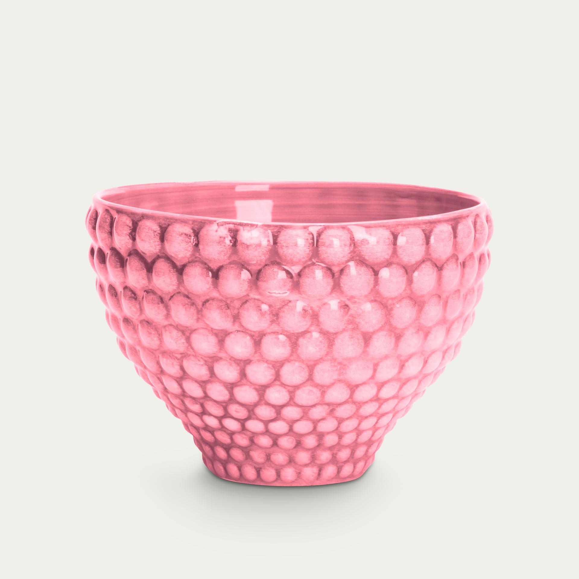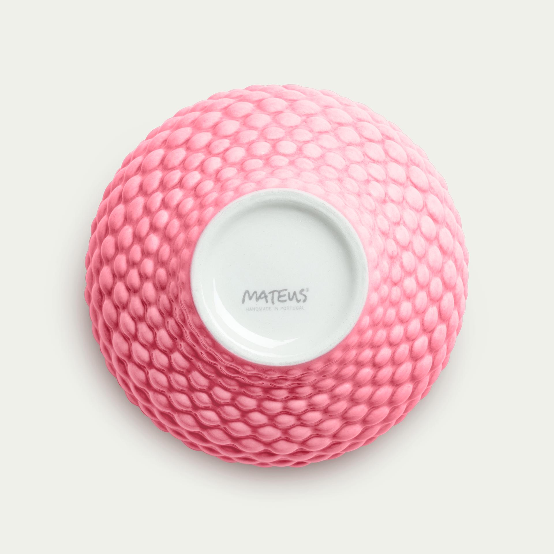 Denna stora skål från Mateus Bubbles-kollektion har en charmig organisk design med en glaserad yta som täcks av bubblor. Varje produkt är handgjord och handmålad av portugisiska keramiker vilket gör att alla skålar får sina egna unika detaljer. Den populära Bubbles-kollektionen kombinerar mode med keramiskt hantverk och har en design som hämtat inspiration från modevärldens klassiska prickmönster.