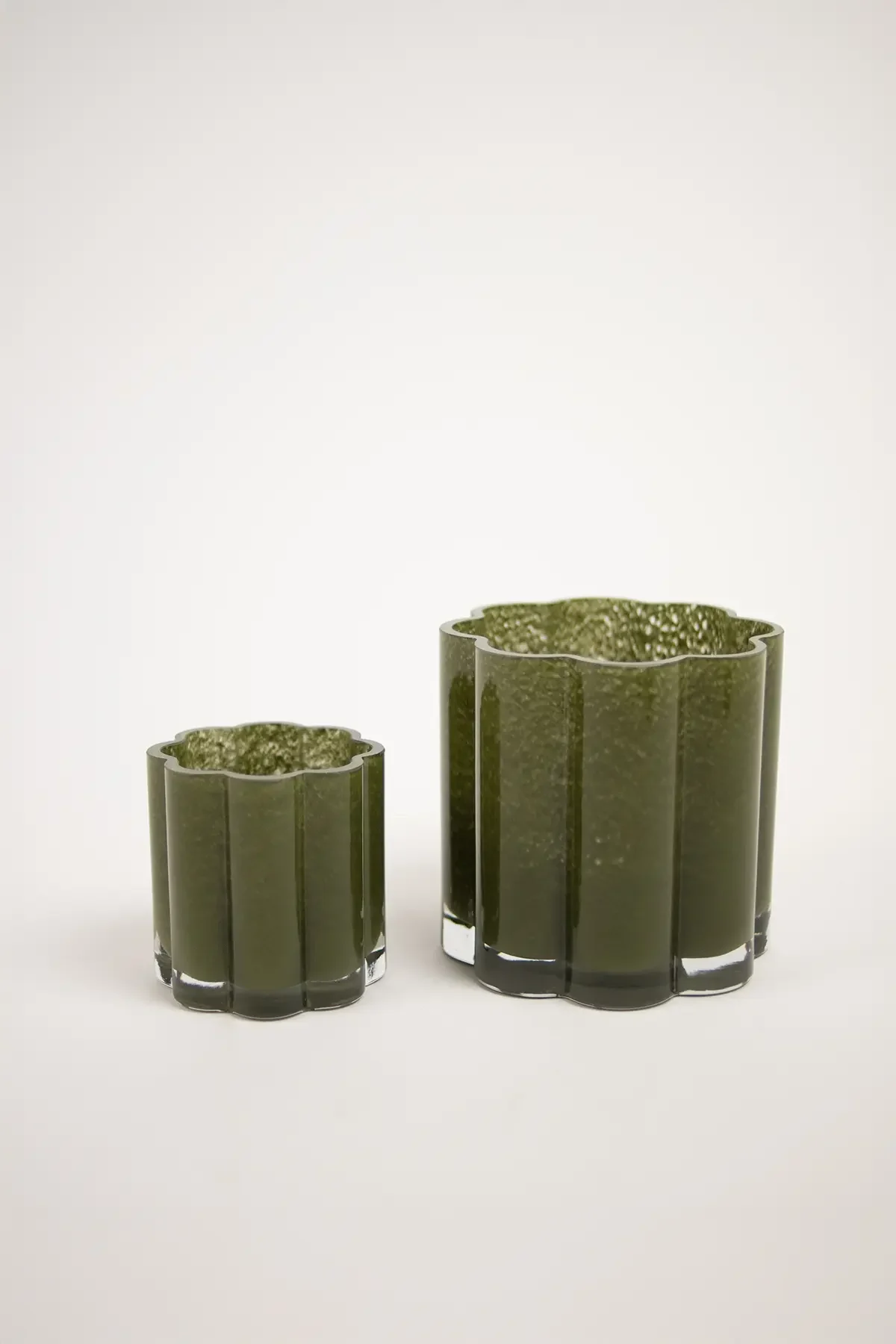 Clara är en dekorativ ljuskopp som ovanifrån liknar en blomma! Finns i två storlekar och flera färger