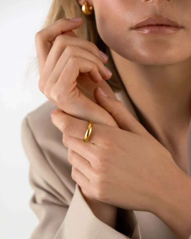 Classic Ring är en klassisk ring med en slät, polerad yta. Tillverkad i rostfritt stål med en slitstark 18K guld PVD-plätering, vilket gör den vattentålig och hållbar. Bär den varje dag – bada, duscha och träna utan att oroa dig för att den tappar färg.