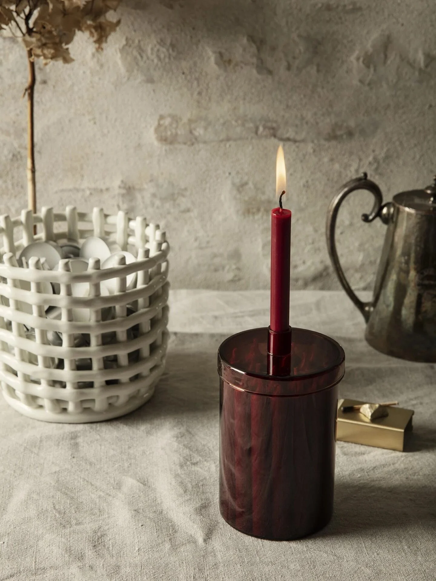 Inled nedräkningen till jul med vår moderna tolkning av det traditionella danska kalenderlyset, även känt som julkalenderljuset. Denna fina glascylinder innehåller 24 små ljus – ett för varje dag i december fram till julafton. Glaslocket fungerar även som en ljusstake med plats för att tända dagens ljus – det är upp till dig att välja om du vill placera locket ovanpå ljusstaken eller för sig självt. Spara glaset till nästa december, då du återigen kan fylla det med ljus efter eget val.