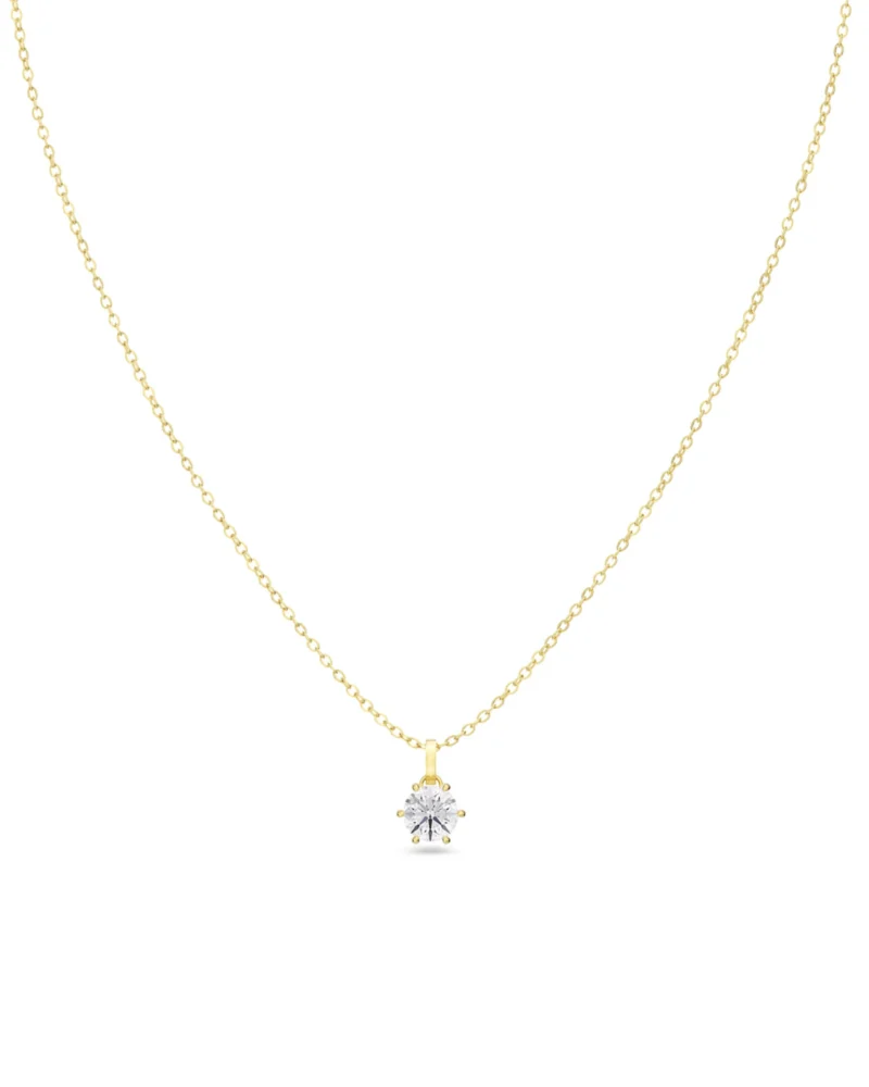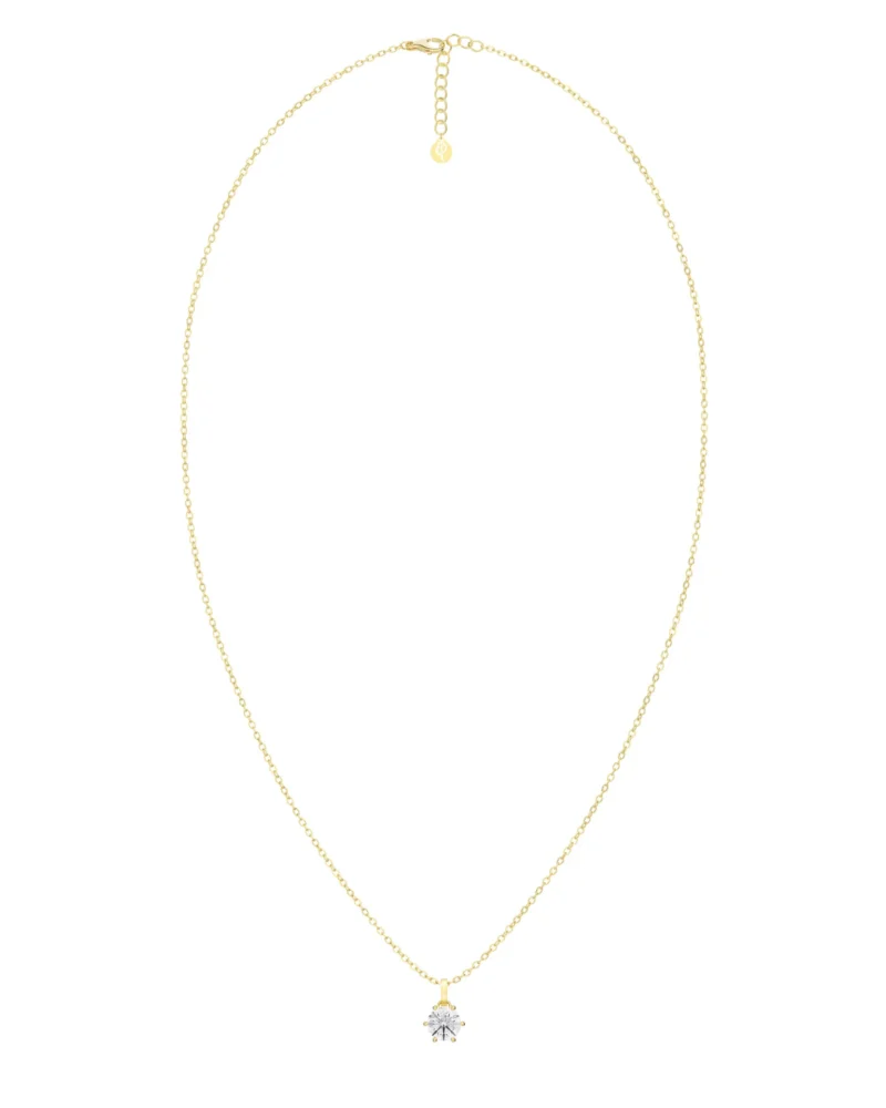 I den klassiska serien Crown kommer här ett halsband där den klara stenen är elegant infattad med sex klor. Crown halsband blir en favorit alla dagar i veckan och gärna i layering med fler halsband och kedjor. Den infattade stenen hänger i en ankarkedja och ses här i blank 14K guldplätering. Serien Crown är en mycket uppskattad present.