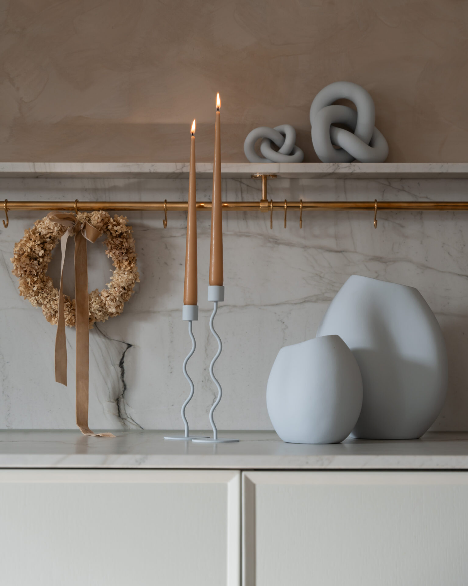 Curved candleholder är en förlängning av de mycket populära och minimalistiska ljusstakarna som finns i tre höjder och flera färger. Mixa och matcha de raka med de nya Curved candleholder. I kollektionen av ljusstakar kommer den nya varianten lanseras i två färger, svart och sand.