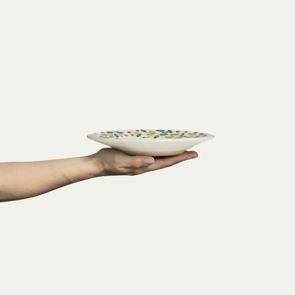 Skapa en varm och glädjerik dukning med hjälp av julkollektionen. Med en tidlös design och handmålade lingonkvistar som dekorerar ytan med gröna och röda toner, är tallriken inspirerad av den traditionsenliga julen. Skapa en personlig dukning genom att kombinera med dina favoriter från någon av andra kollektionerna.