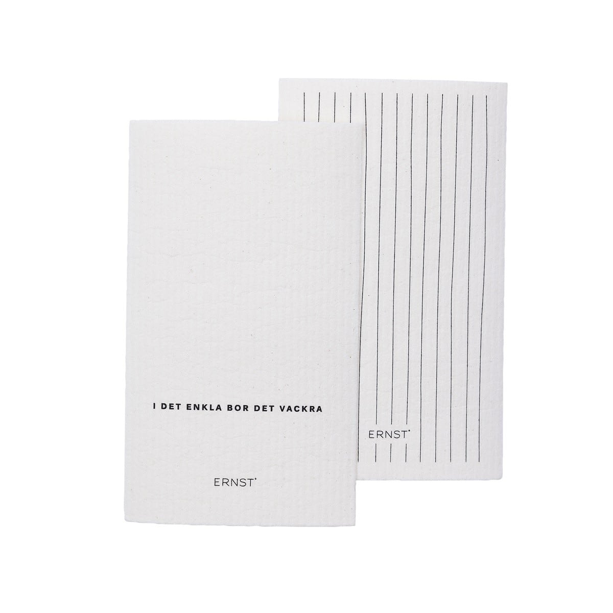 Håll köket snyggt och rent med ERNST komposterbara disktrasor. Ett två pack som innehåller både citat och ett fräscht randigt mönster. Mått produkt 15*25cm.