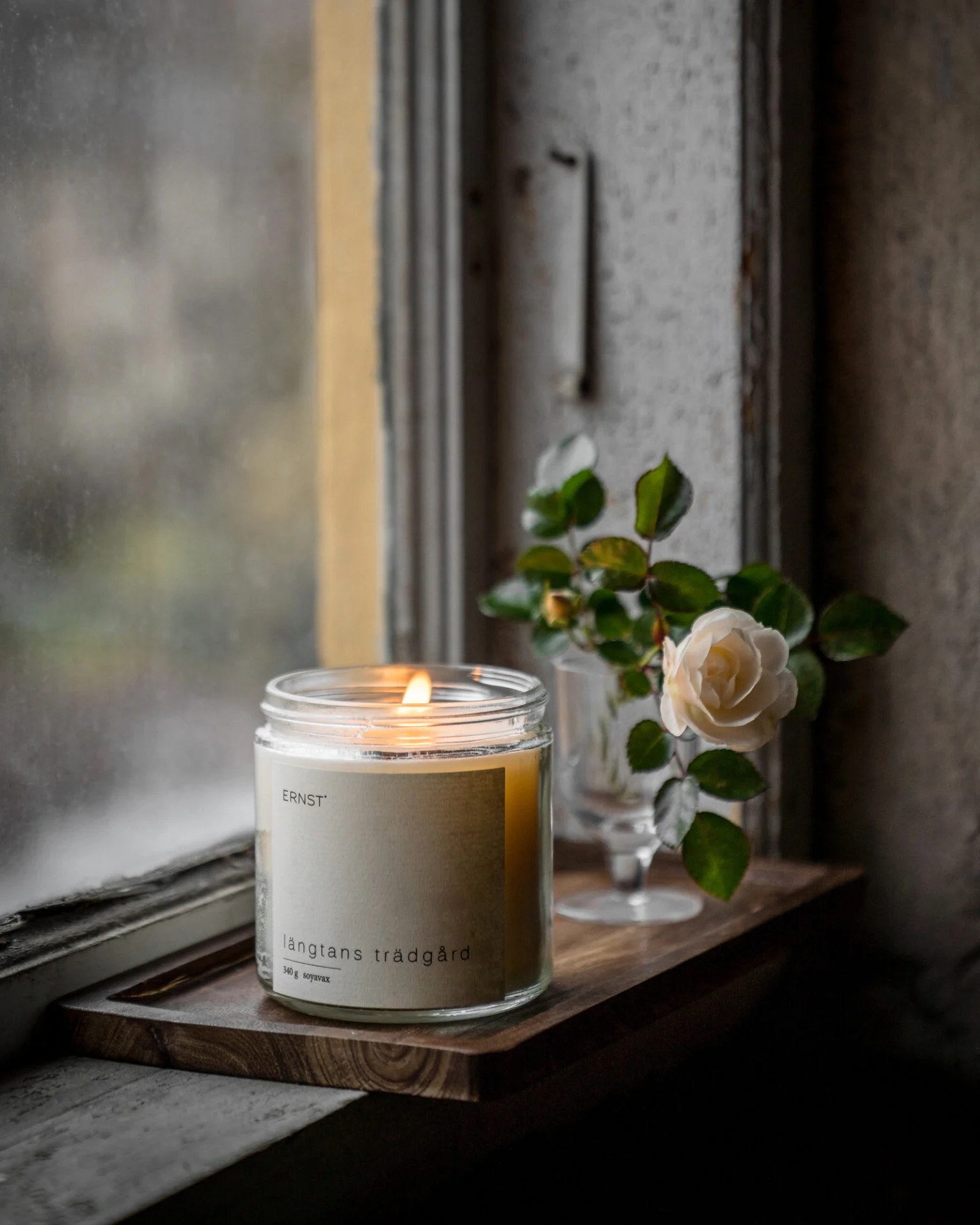 ERNST doftljus i glasburk ger en underbar doft av skogshallon.