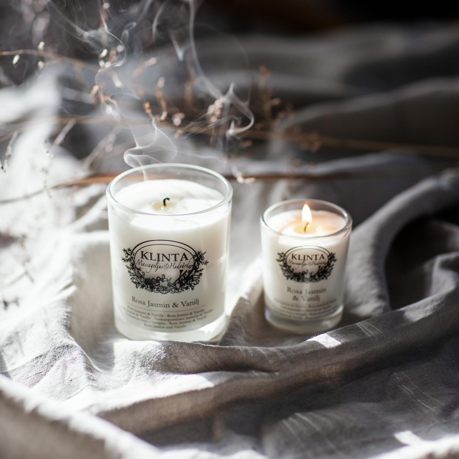 Klinta Massageljus är helt vegetabiliska och giftfria ljus.  Den vegetabiliska basen har blandats med aromoljor av högsta kvalitet och tappats i återvunnet glas. Alla Klintas produkter genomgår en hög kvalitetskontroll för att säkerställa rättvisa och älskade produkter.