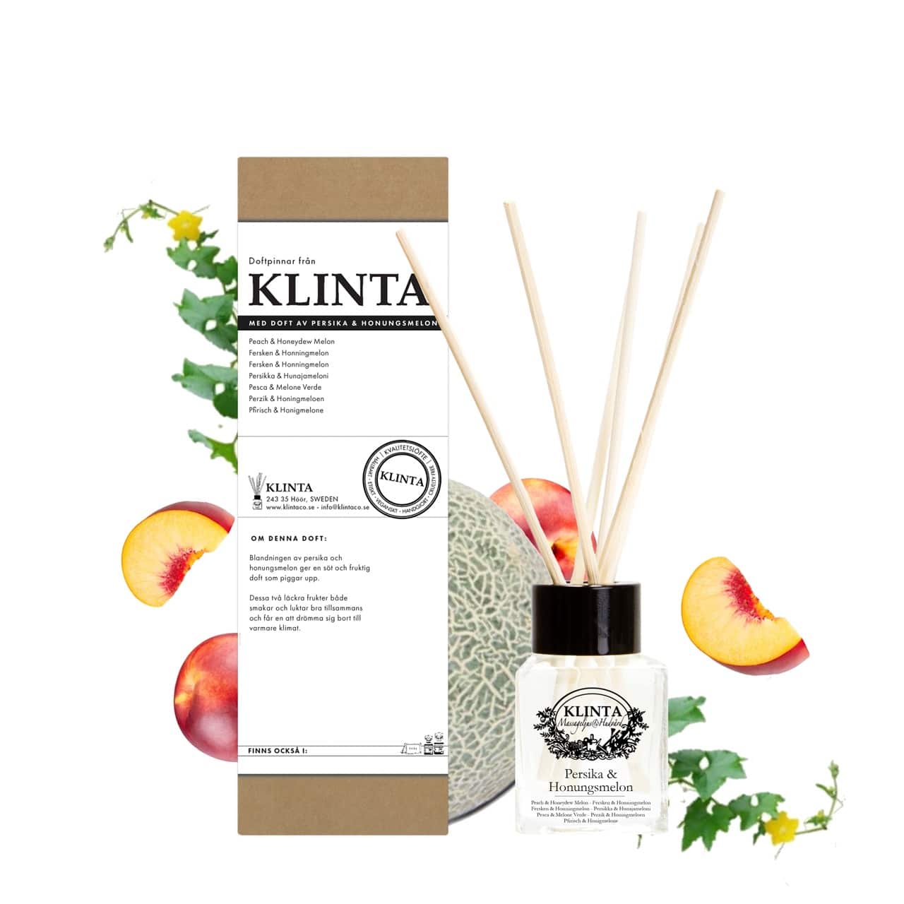 Klintas Doftpinnar har samma milda och rena doftegenskaper som Massageljusen och vi väljer att gå samma väg vi hittills gjort, nämligen den naturliga och den miljövänliga. Till skillnad från många andra doftpinnar som mestadels består av alkohol eller glykol har Klinta grävt lite djupare och hittat en vegetabilisk olja med lika goda doftbärande egenskaper som alkohol men utan den starkt alkoholhaltiga ångan. Klintas Doftpinnar baseras nämligen på olja från sojabönan en lättodlad och snabbväxande böna som är helt förnyelsebar. Sedan tillsätts det antingen eterisk olja eller doftolja.