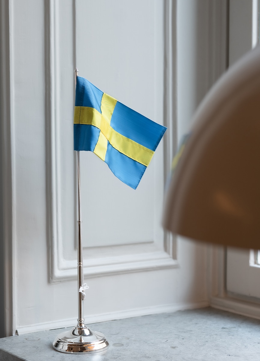 Skultunas klassiska flaggstång, perfekt för styrelserummet, nationaldagar eller födelsedagar. Flaggstången är tillverkad av försilvrad mässing.