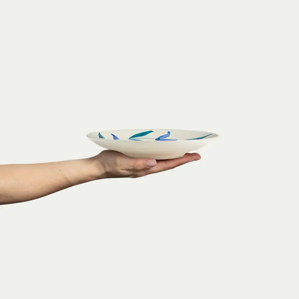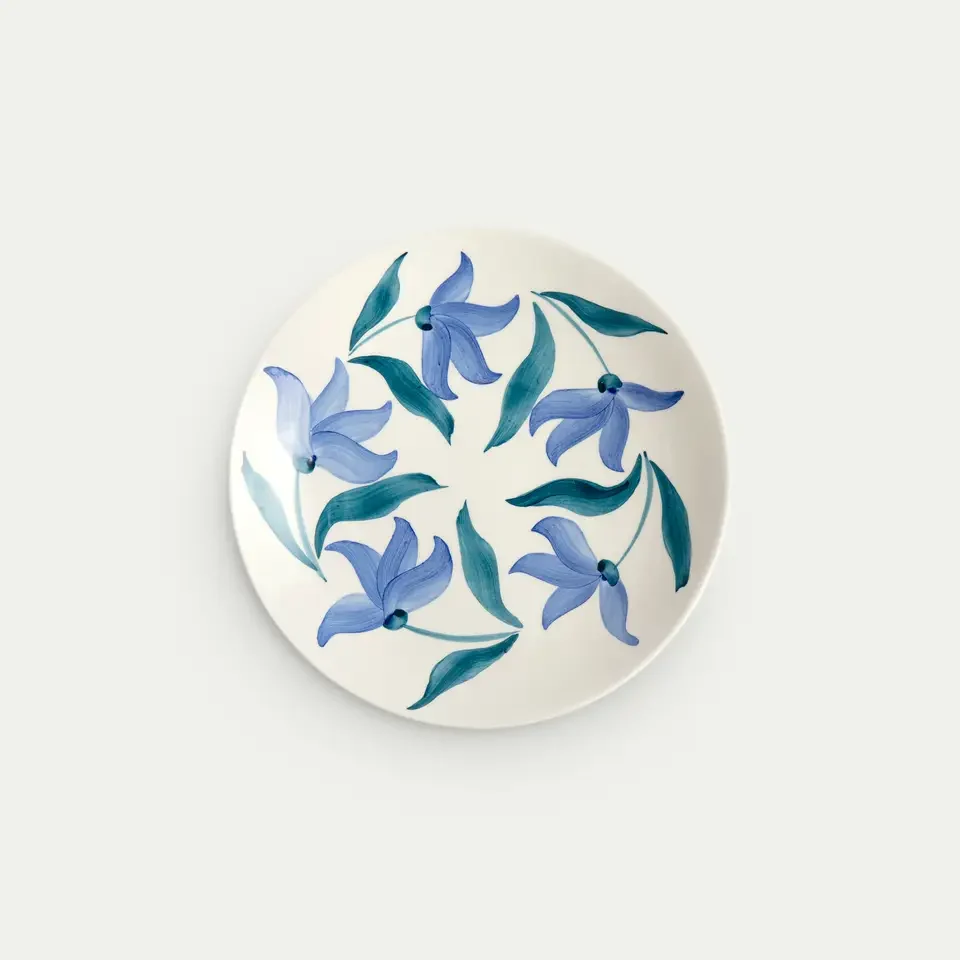 Denna eleganta assiett från Flowers kollektionen är handgjord och handmålad i Portugal, med vackra blomdetaljer i nyanser av blått, ljusblått och ocean. Perfekt för förrätter, efterrätter eller en stilfull frukostdukning. Kombinera med andra delar från Flowers eller mixa med Basic och Bubbles för en personlig dukning.