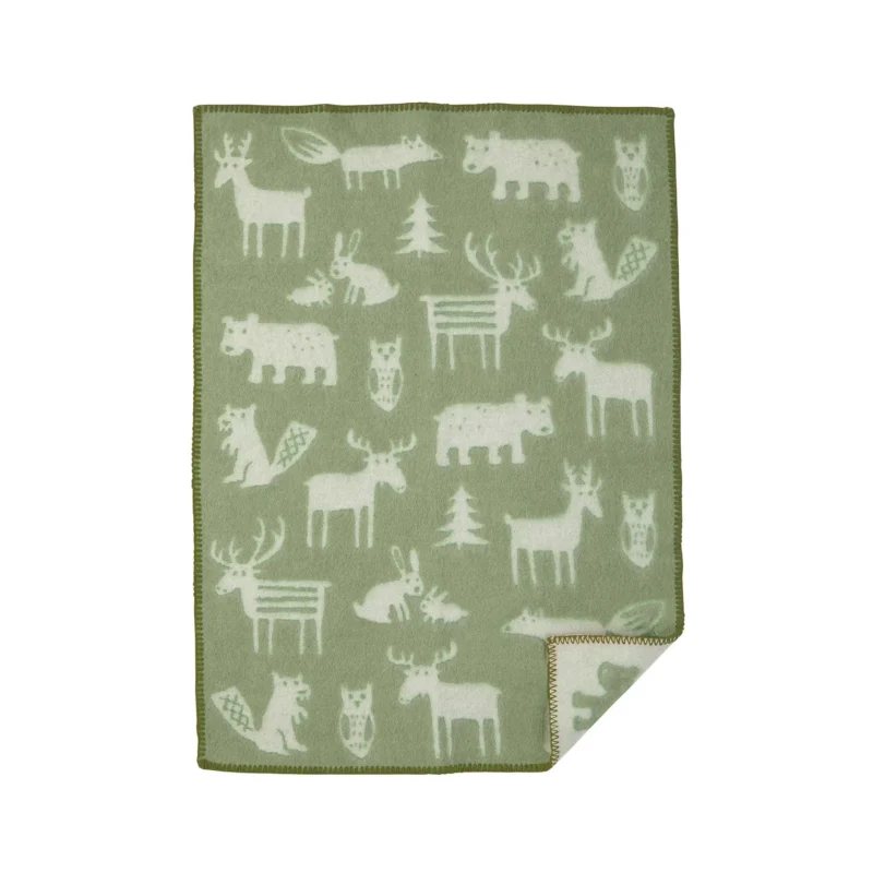 Forest är designad av Bengt & Lotta och är en filt tillverkad i 100% lammull. Filten har ett lekfullt mönster med flera av våra vänner som bor ute i skogen. Underbar filt att pryda spjälsängen med eller att ha i barnvagnen under promenader.