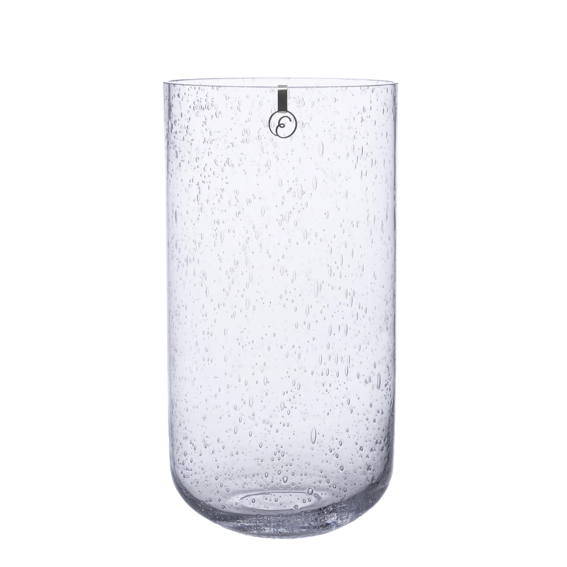 Glasvas från ERNST i bubbligt glas, med rak form och rundad botten, är en levande detalj för hemmet. De små bubblorna i glaset ger en lekfull struktur som fångar ljuset och ger varje blomsterarrangemang en särskild närvaro. En vas som förenar enkelhet med karaktär.