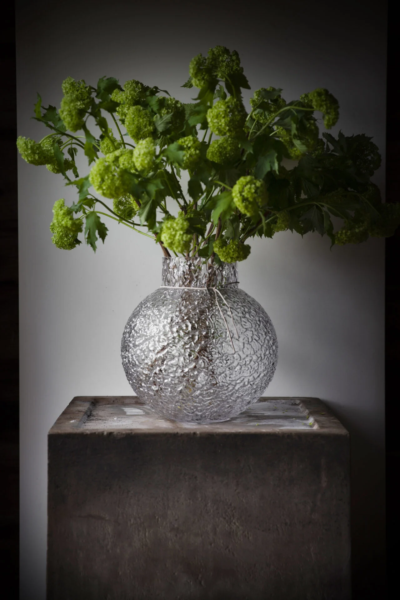 ERNST populära glasvas har nu kommit med en härlig struktur på glaset. Vasen drar verkligen blickarna till sig och tillsammans med en underbar bukett skapar den ett fantastiskt blickfång i hemmet. De mindre vaserna i samma serie går även att använda som ljuslyktor.