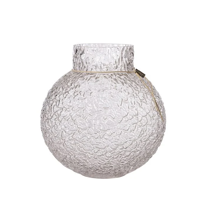 ERNST populära glasvas har nu kommit med en härlig struktur på glaset. Vasen drar verkligen blickarna till sig och tillsammans med en underbar bukett skapar den ett fantastiskt blickfång i hemmet. De mindre vaserna i samma serie går även att använda som ljuslyktor.