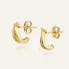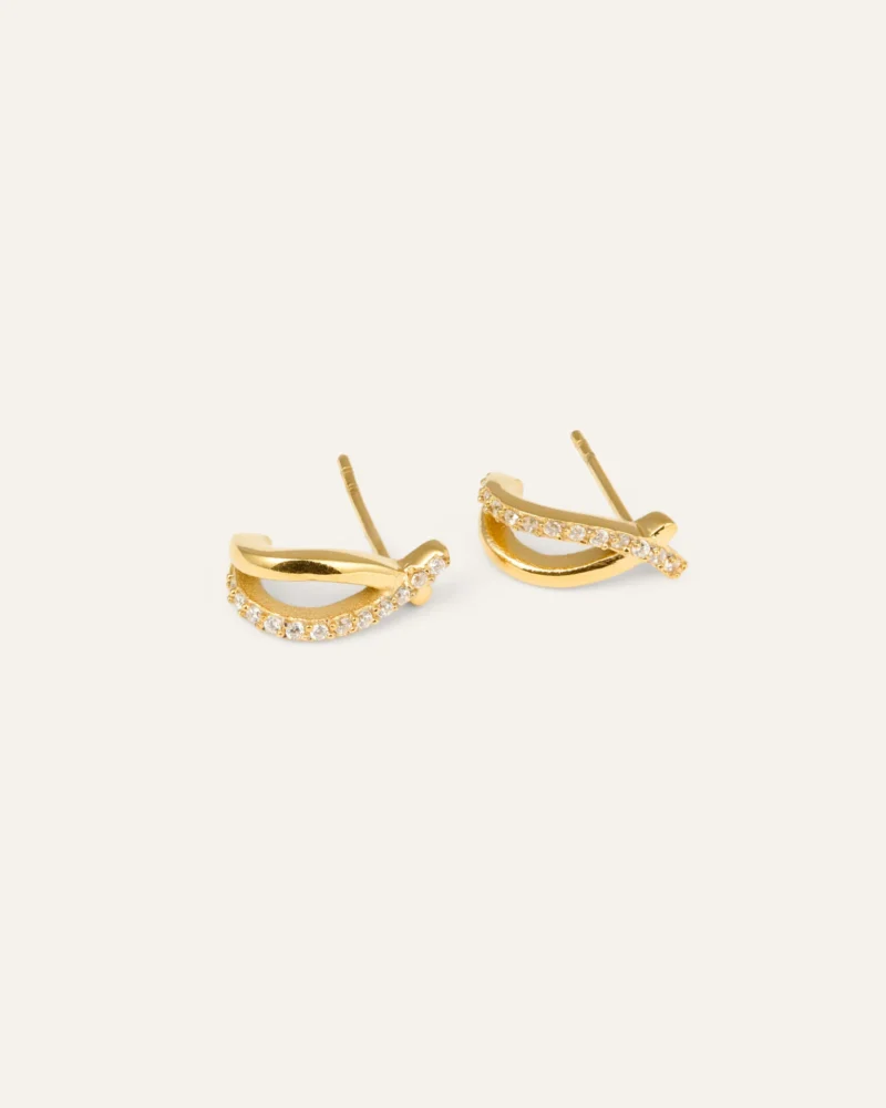 Ren styrka i 18K-guld – en elegant vriden siluett prydd med gnistrande vit cubic zirconia. Vattentålig design följer med dig genom regn, dusch eller strandbad utan att tappa sin lyster. Bär dem med självsäkert självförtroende varje dag.