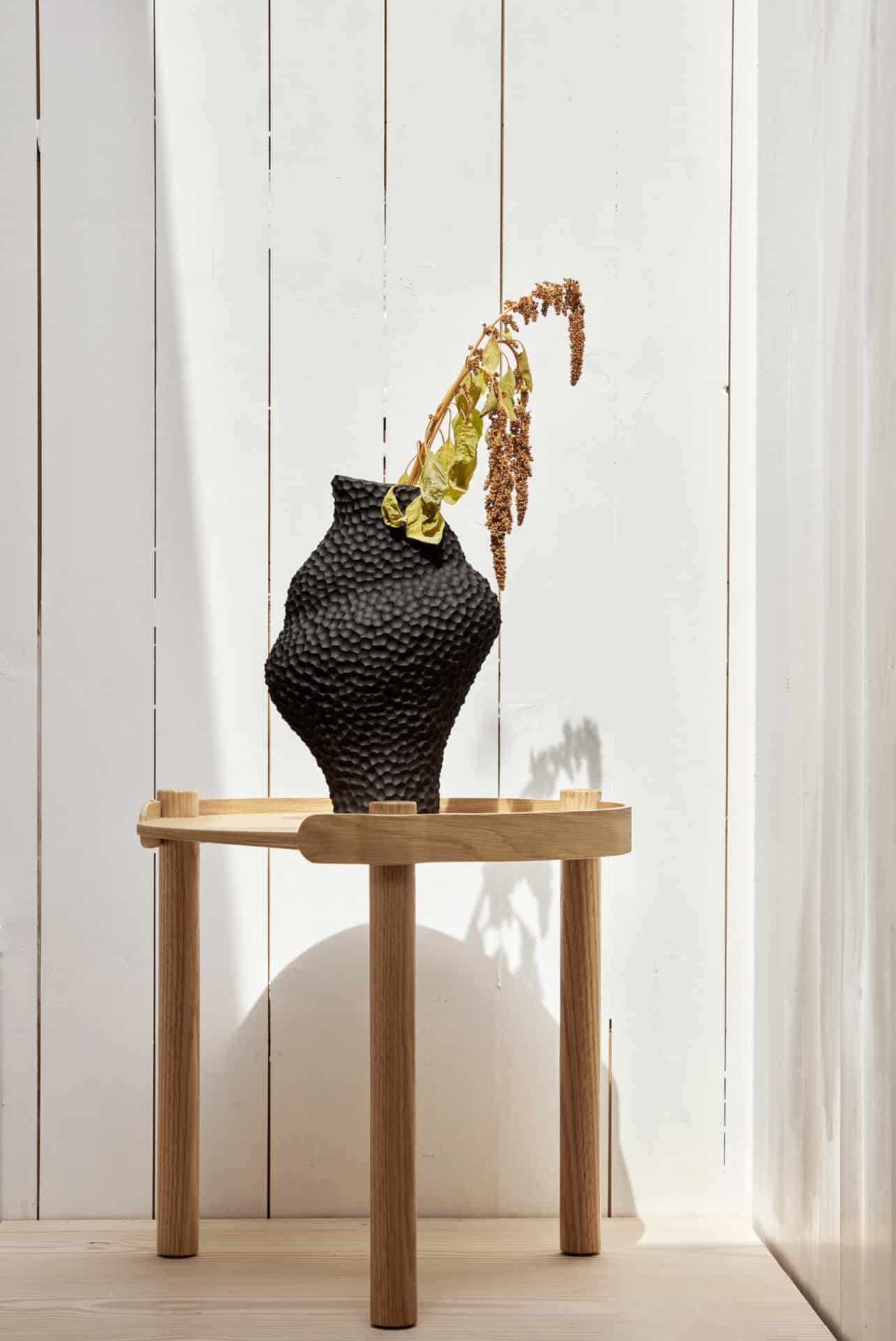 Isla är en vacker vas med en unik organisk form som för tankarna till livet under ytan. Designen är typisk för den finska konstnären Hanna Heino som hämtar sin inspiration från naturen och från materialen hon arbetar med. Vill man så är Isla en perfekt display för favoritblommorna men den skulpturala formen fungerar lika bra utan något i. Isla finns i kulörerna svart och linne samt i en mindre och en större version. Hanna har ett typiskt sätt att arbeta med lera och man kan nästan känna hennes fingrar i de små inbuktningarna på skulpturens yta.