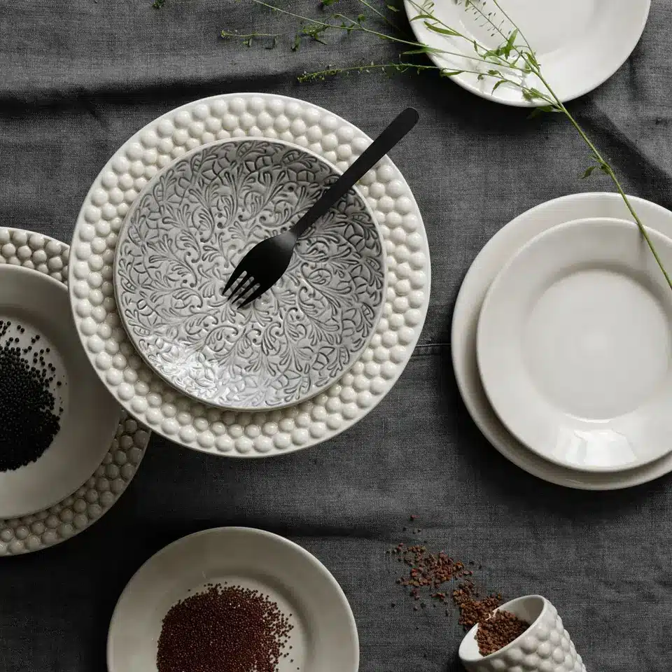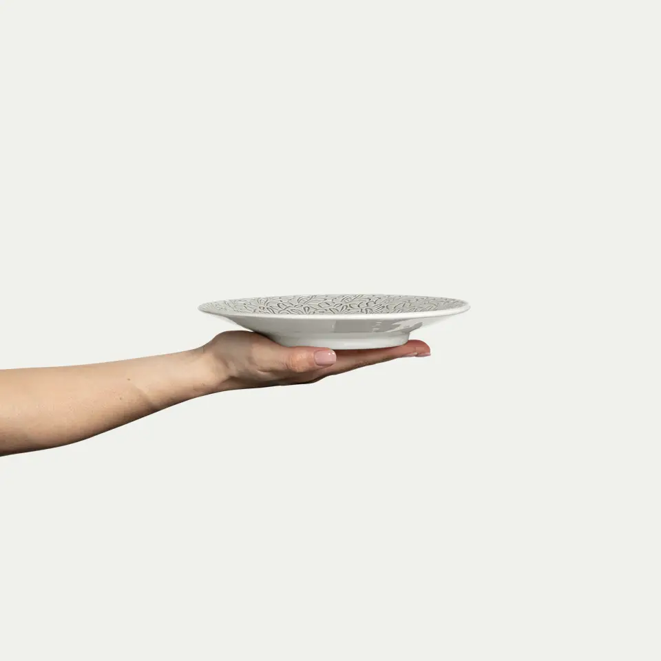 Mateus karaktäristiska spetsmönstret pryder denna assiett som passar lika bra till förrätter och tillbehör som till snittar eller frukostfrallan. Mateus kollektion Lace har en sofistikerad och romantisk känsla med mjuka former och organiska mönster. Duka upp med Mateus Basic som bas och ge din dukning extra värme och charm med denna charmiga assiett i helspets.