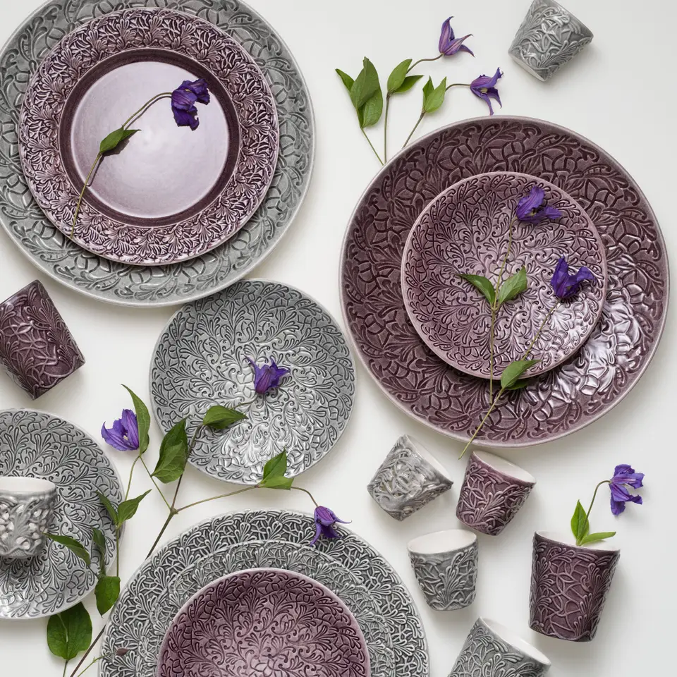 Denna mindre tallrik från Mateus är dekorerat med ett organiskt spetsmönster runt kanterna och finns tillgänglig i 13 olika färger. Duka ditt bord med tallrikar i olika färger och mixa med keramik från Mateus Basic, Bubbles eller någon av de andra kollektionerna för att skapa en egen unik stil.