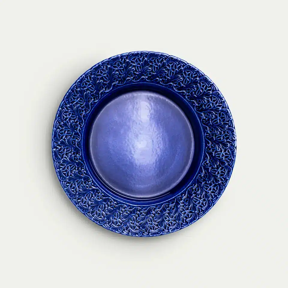 Denna signaturtallrik från Mateus kollektion Lace är ett romantiskt inslag på middagsbordet. Dess generösa storlek gör att den fungerar lika bra till uppläggning av mindre tilltugg, desserter eller frukt. Finns tillgänglig i 13 olika färger.