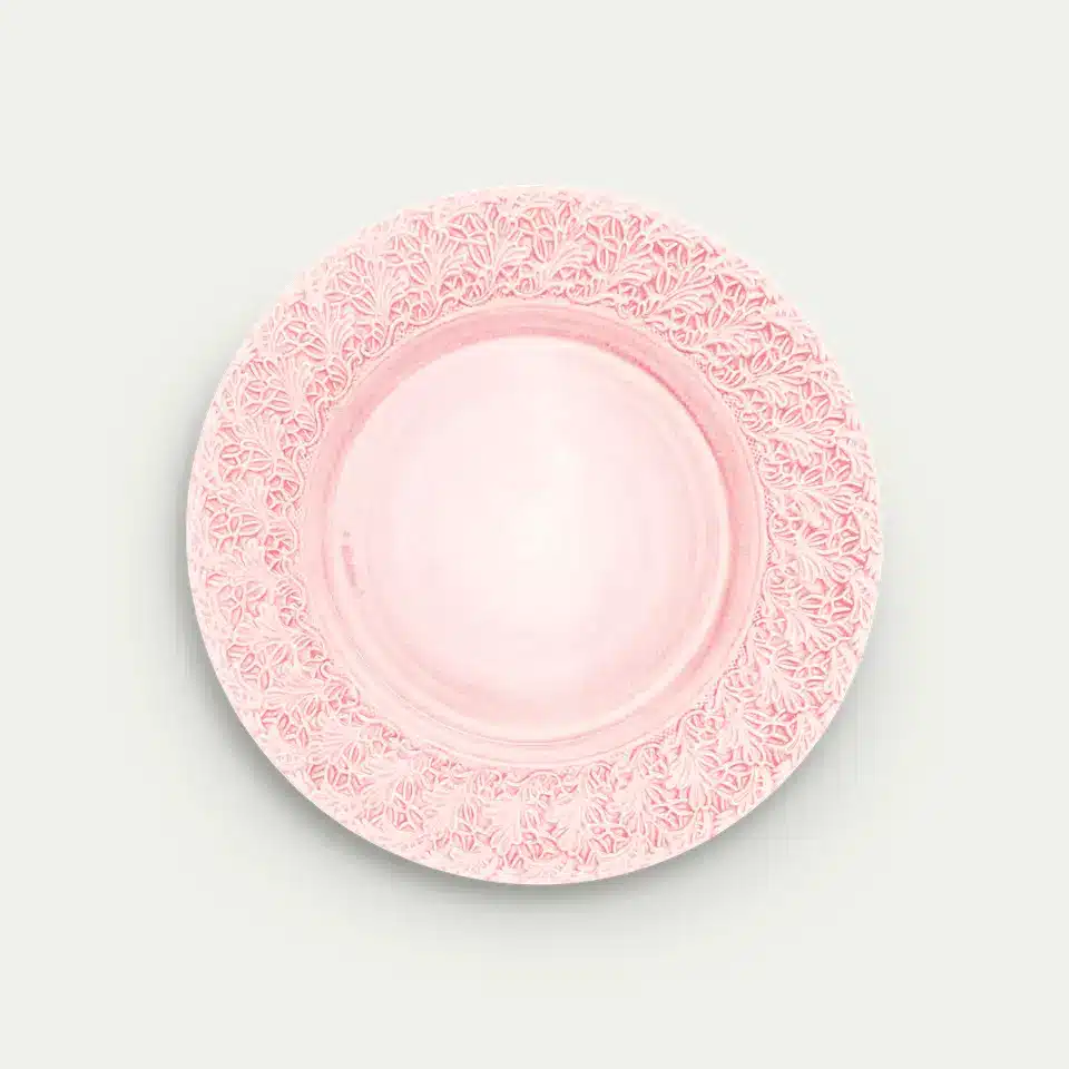 Denna signaturtallrik från Mateus kollektion Lace är ett romantiskt inslag på middagsbordet. Dess generösa storlek gör att den fungerar lika bra till uppläggning av mindre tilltugg, desserter eller frukt. Finns tillgänglig i 13 olika färger.