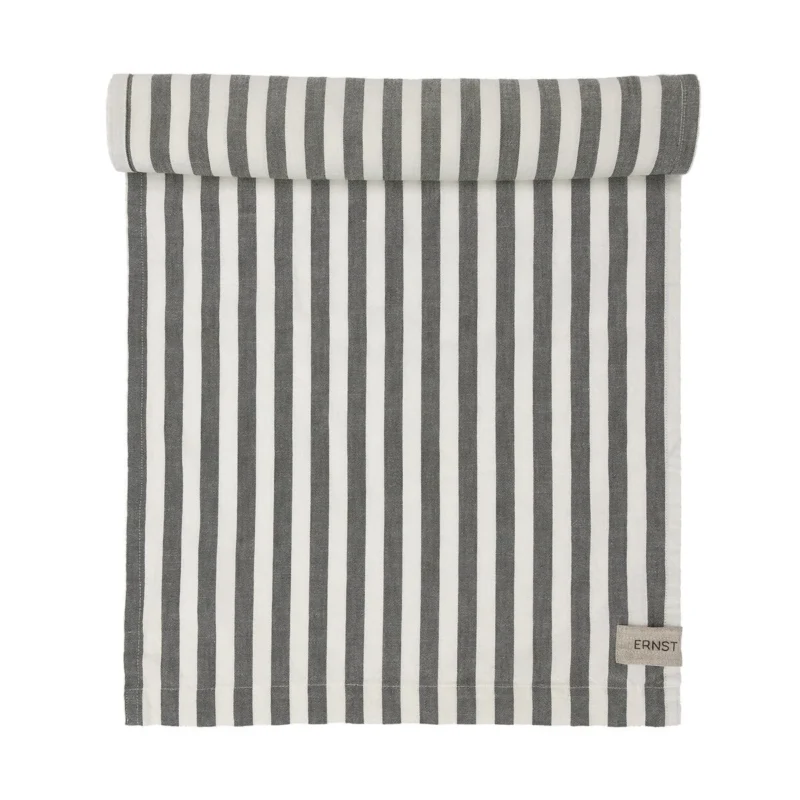 Löpare 45×150 bred rand grön/vit. Med denna löpare förvandlar du ditt bord till en plats av tidlös enkelhet.