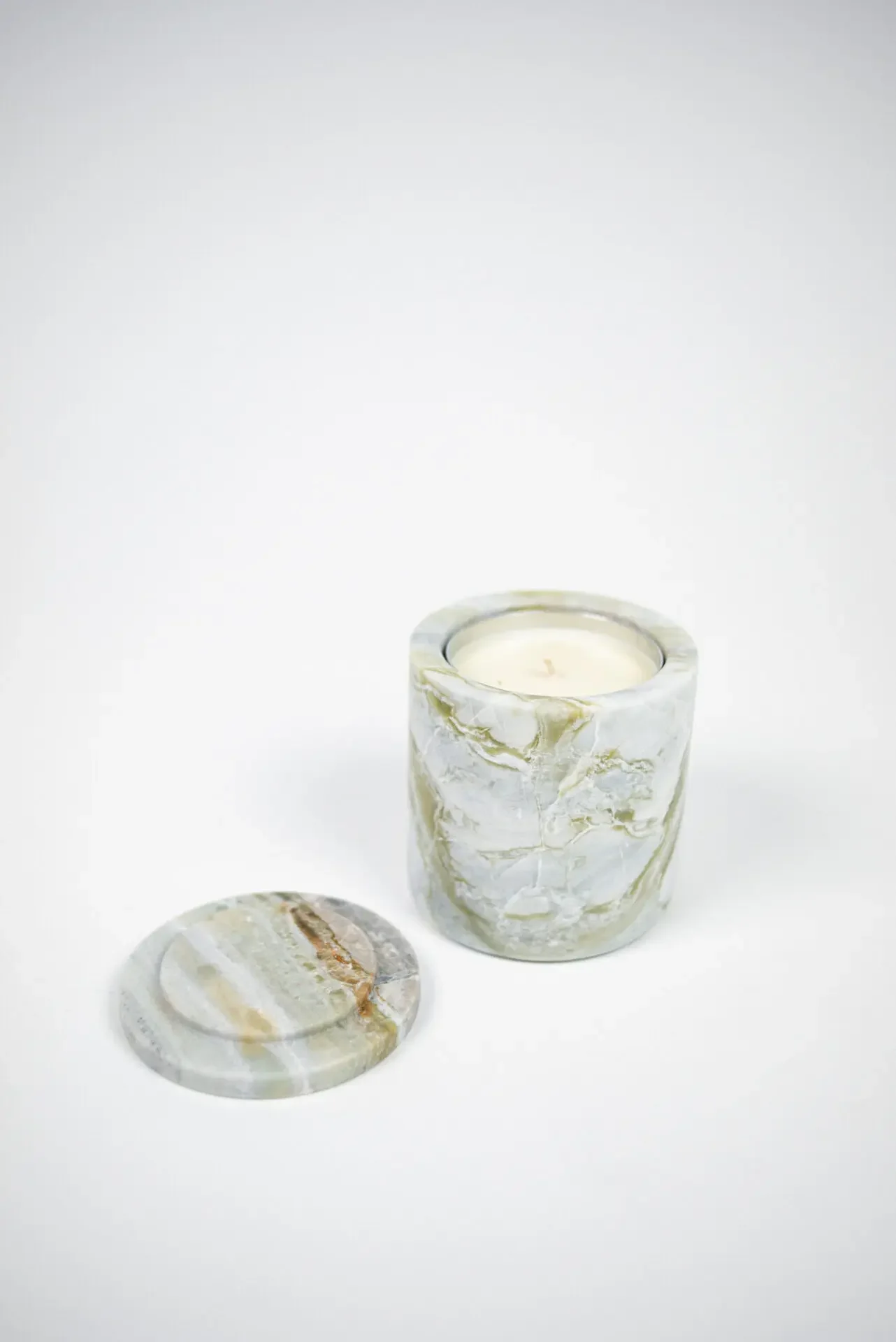 Doftljus med en härlig doft av blodapelsin och grapefrukt i en vacker marmorbehållare. Brinntid: ca 45 h. Marmorns naturliga ådring gör varje behållare unik i färg och utseende.
