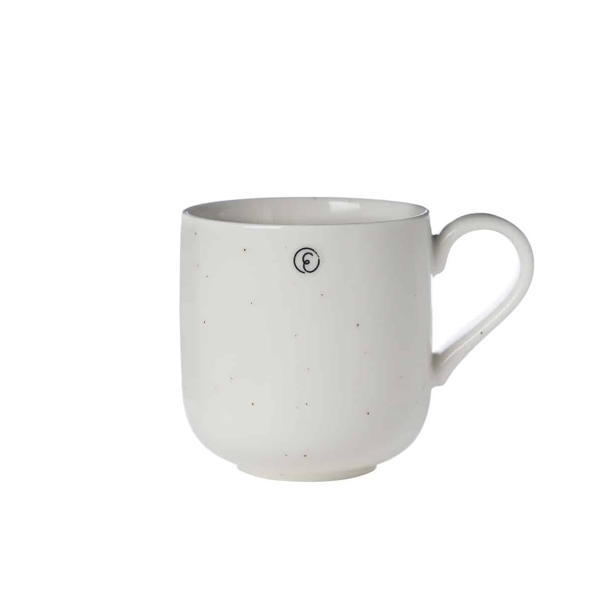 ERNST kopp i porslin ingår i en större fikaserie med flera olika delar. Finns i 2st Vackra färger sandgrå & vanilj med inslag av små prickar.