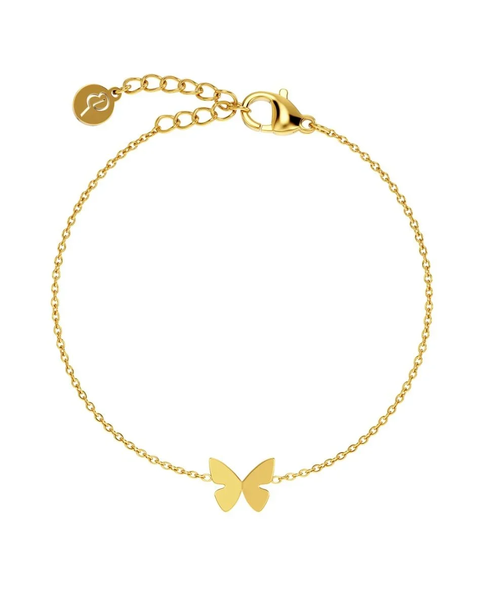 • En stiliserad fjäril i rörelse ser vi i serien Papillon, som finns till både mor och dotter. Fina Papillon blir snabbt en favorit som du väljer att bära vid alla tillfällen och är en fin present. Papillon barnarmband har en liten fjäril fäst med en nätt ankarkedja, här i blank 14K guldplätering. Fjärilen symboliserar olika saker i olika kulturer, en universell symbol som fascinerar människor runt om i världen.Varning! Innehåller smådelar, ej lämplig för barn under 3 år.