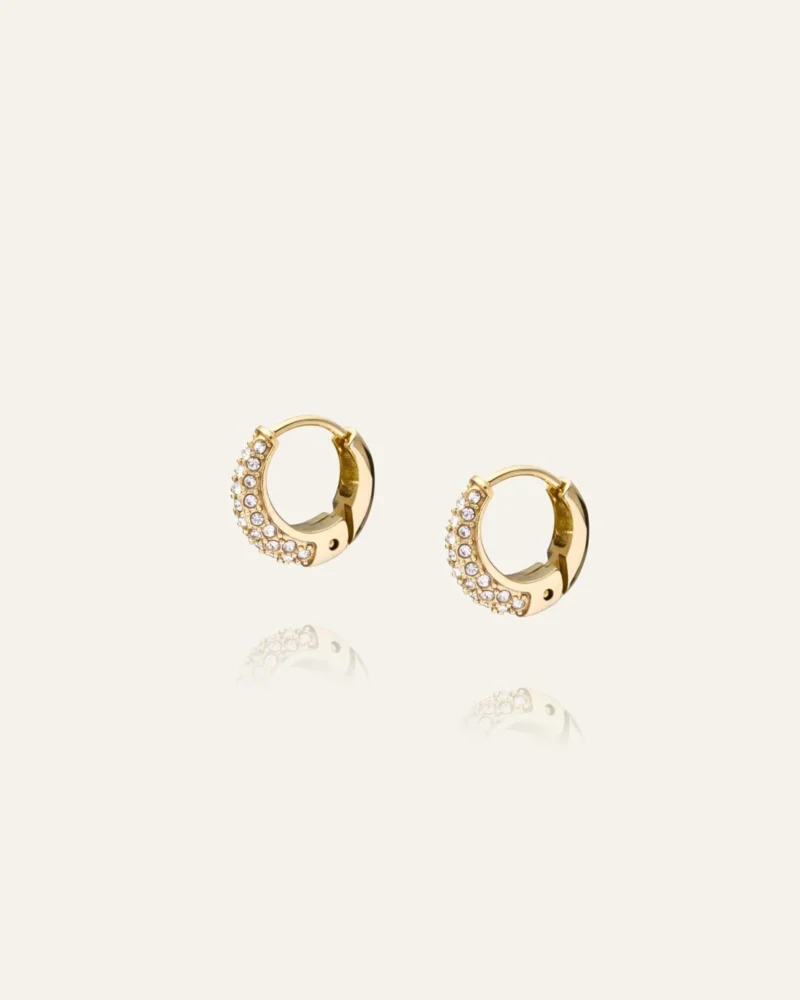 Diskret storlek, maximal elegans. Pavé Precious Hoops är dekorerade med gnistrande Cubic zirconia-stenar och tillverkade i rostfritt stål med 18K guld PVD-plätering. Slitstarka och vattentåliga för att behålla sin färg och lyster över tid.