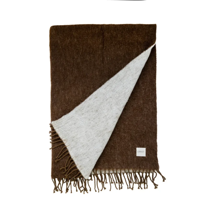 ERNST pläd som omsluter dig med lugn och värme, kola på ena sidan och natur på andra. Fransarna dansar mjukt i kanten, och oavsett om du sveper den om dig en kylig kväll eller låter den vila på soffan, tillför den en känsla av ro och harmoni i rummet