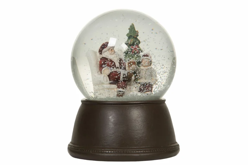 Snöglob med Jultomte och ett barn. Skaka den för att det ska snöa. Tillverkad av poly.