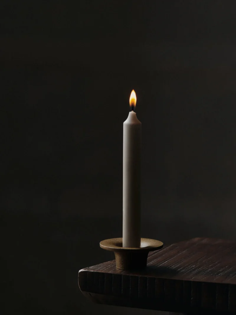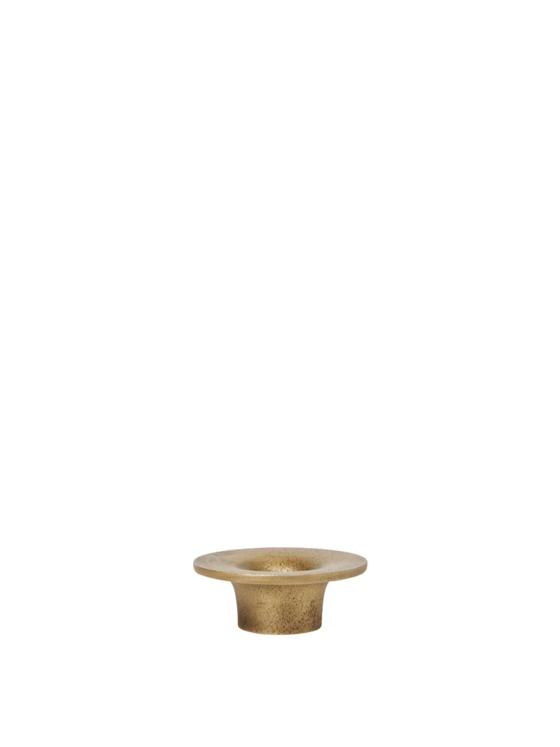 Ljusstaken Soothe utmärker sig med sin diskreta elegans och mjukt skulpterade form. Tillverkad av gjuten aluminium med en texturerad sandgjuten yta och mässingsfinish, skapar dess mjuka kanter och subtila kurvor en tyst närvaro. Den är utformad för att delvis omsluta ljuset i sin form och ger en känsla av balans och lugn till alla miljöer, vilket gör den perfekt för både vardagliga ritualer och säsongsbetonade stunder.