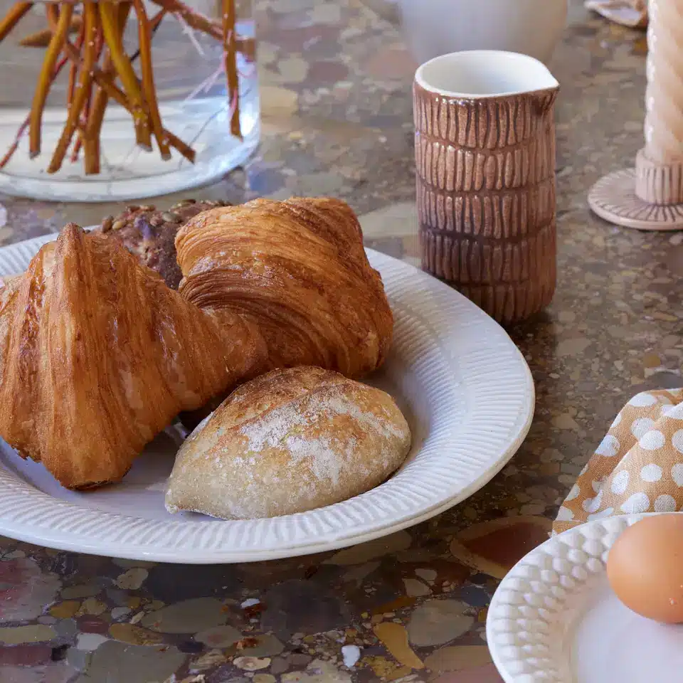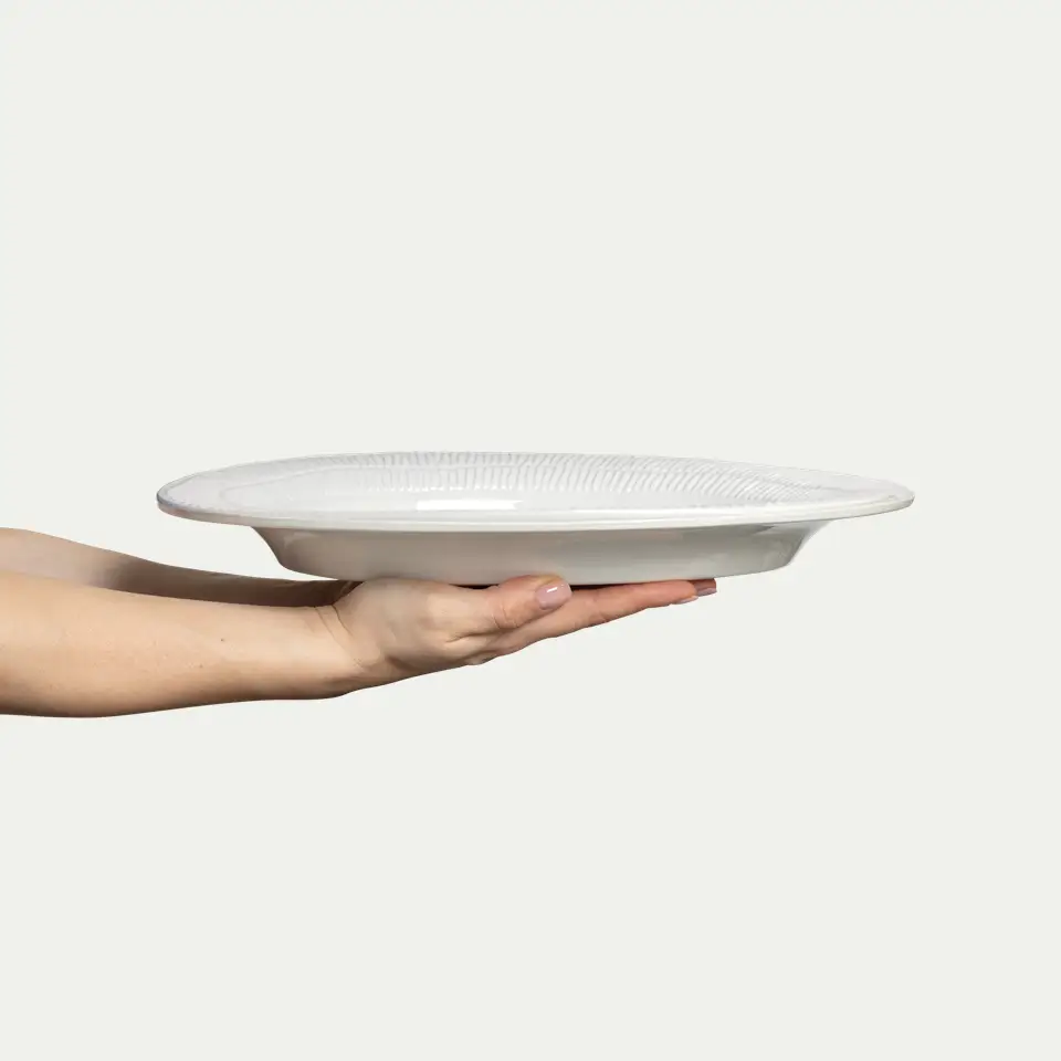 Mateus Stripes fat är en funktionell ögonsten som passar perfekt för att servera större rätter eller mindre aptitretare. Dess mjuka former balanseras med ett grafiskt mönster av organiska streck som dekorerar dess kanter. Alla fat är formade, målade och glaserade för hand, vilket ger varje föremål en unik attityd med personliga detaljer. Upptäck och utforska de obegränsade möjligheterna i ditt eget skapande genom att duka upp bordet tillsammans med dina olika favoriter från Mateus andra kollektioner.