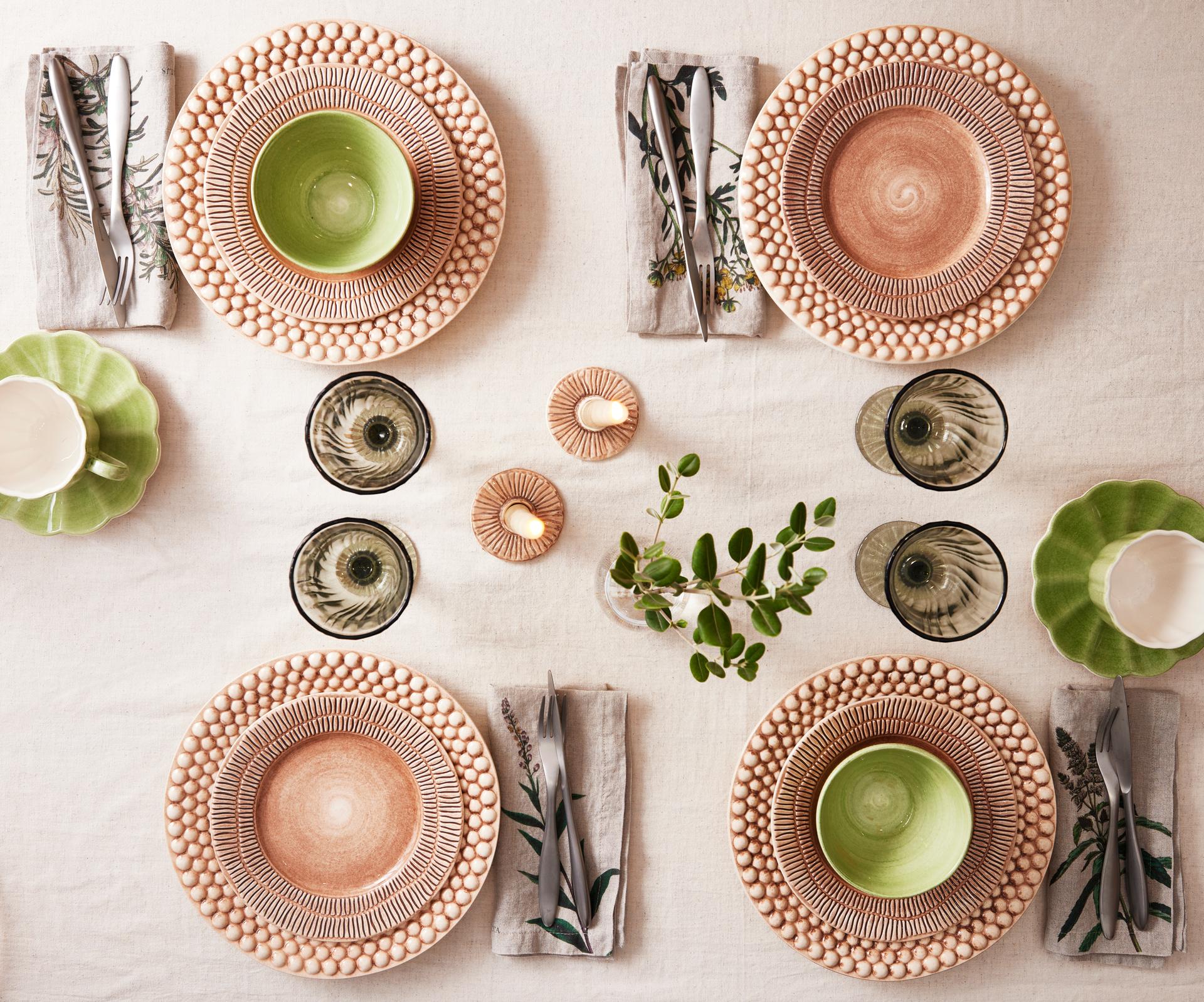 Servera middagen med värme och kärlek genom att duka bordet tillsammans med tallrikar från Mateus Stripes. Dess mjuka former och glaserade yta balanseras med ett grafiskt mönster av organiska streck som dekorerar kanterna. All keramik är handgjord och handmålad i Portugal, där varje penseldrag lämnar sitt eget unika avtryck. Utforska din egen kreativitet genom att mixa de olika färgerna och matcha med dina favoriter från någon av de andra kollektionerna, så som Mateus Basic eller Bubbles