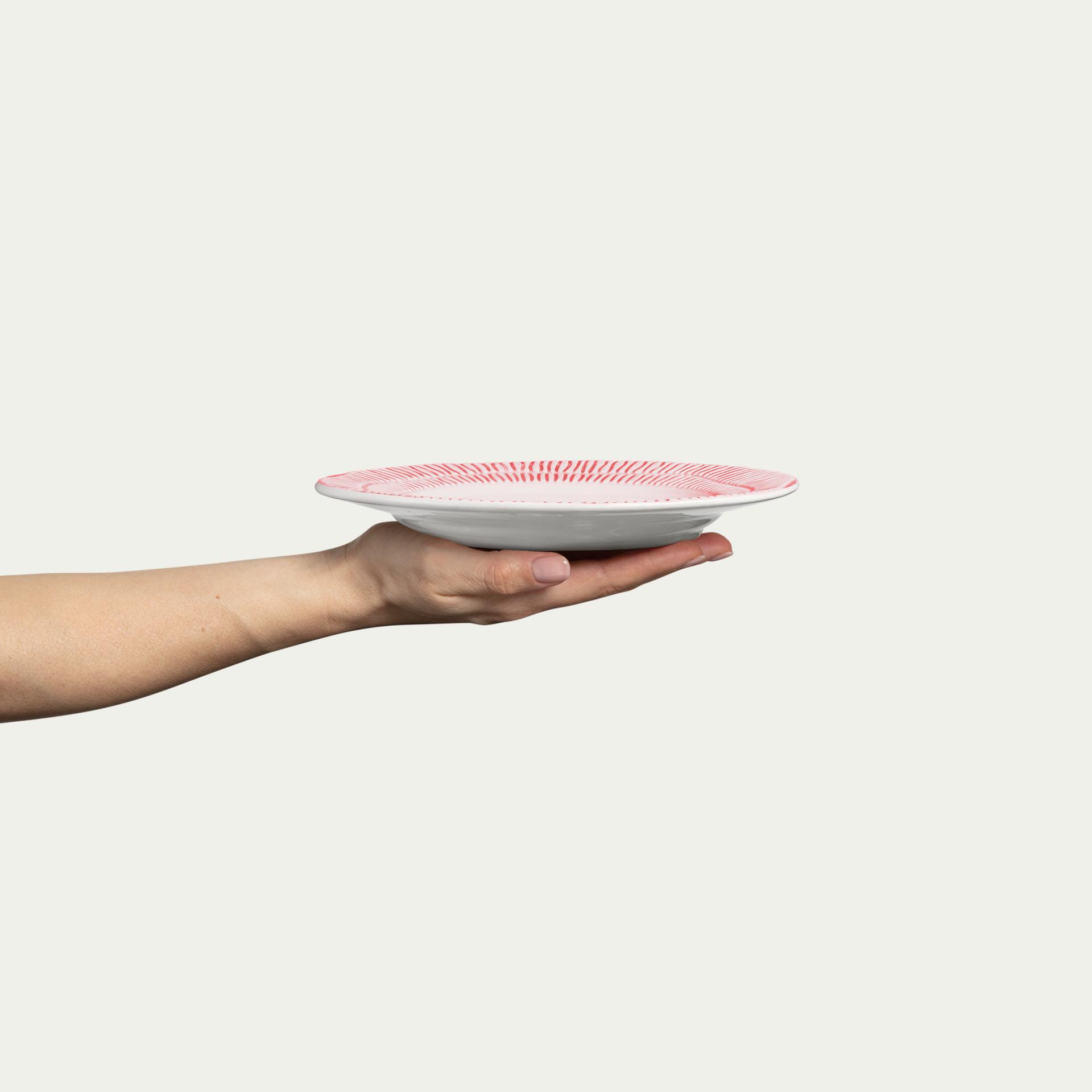 Servera middagen med värme och kärlek genom att duka bordet tillsammans med tallrikar från Mateus Stripes. Dess mjuka former och glaserade yta balanseras med ett grafiskt mönster av organiska streck som dekorerar kanterna. All keramik är handgjord och handmålad i Portugal, där varje penseldrag lämnar sitt eget unika avtryck. Utforska din egen kreativitet genom att mixa de olika färgerna och matcha med dina favoriter från någon av de andra kollektionerna, så som Mateus Basic eller Bubbles