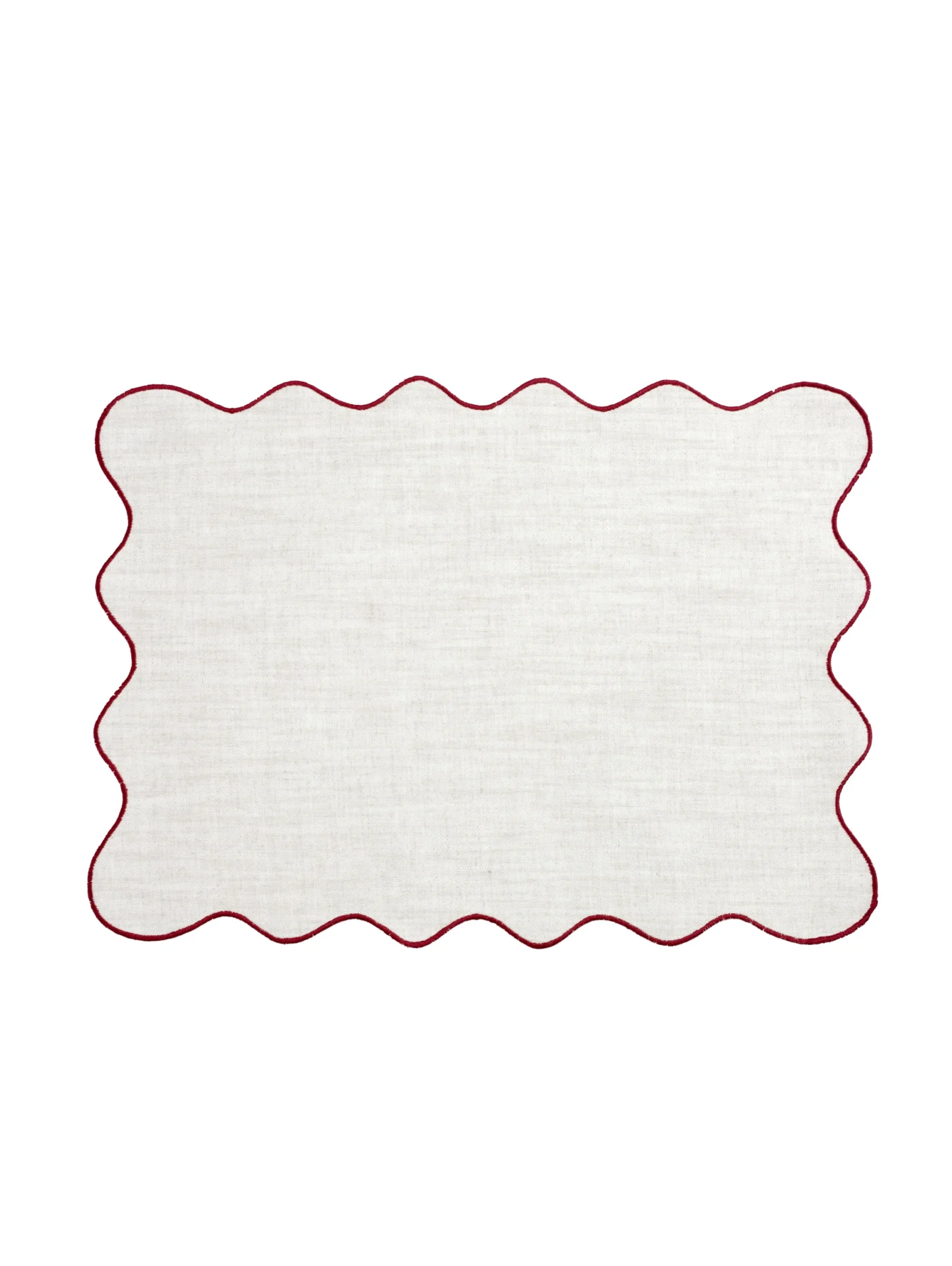 Bordstablett  i bomull/linneblandning, chambraytyget ger den ett linneliknande utseende och har vågiga sidor och en grå dekorationssöm längs alla fyra sidor. Storlek 35×45 cm. Produkten är certifierad enligt STANDARD 100 by OEKO-TEX®. Certifieringen garanterar att produkten är testad och fri från ämnen som kan vara skadliga för hälsa och miljö.