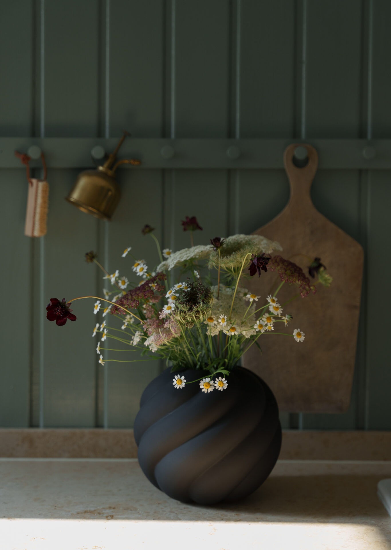 Med sitt vågformade utseende, är denna lekfulla vas perfekt för mindre buketter eller vårblommor.