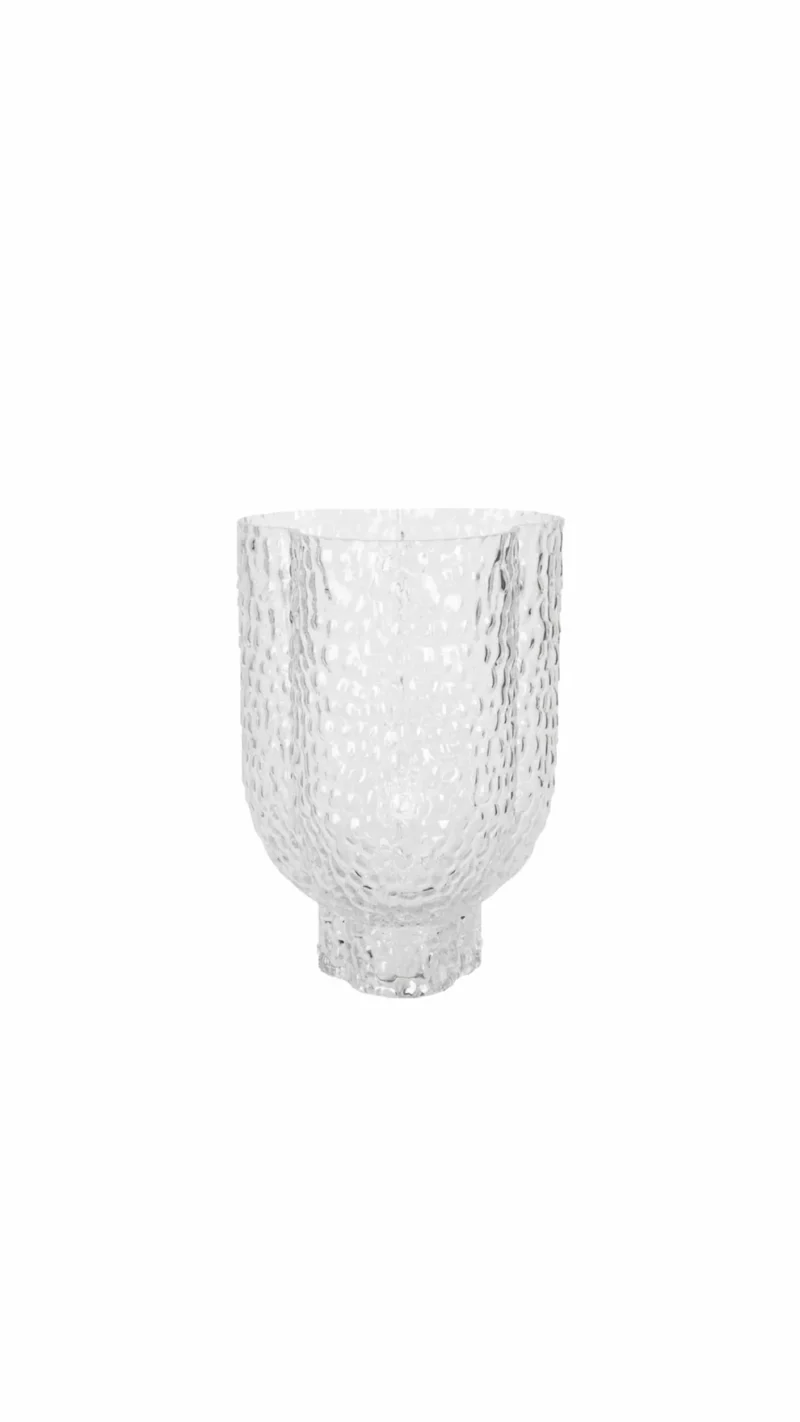 Blomformad vas med mönstrad yta. För dig som älskar att ha blommor och buketter hemma. Tillverkad i glas.