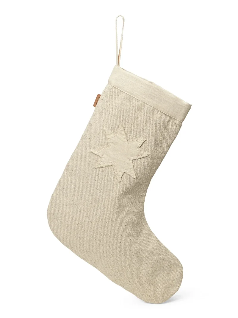 Vela Christmas Stocking – Natural är noggrant tillverkad av naturlig ofärgad GOTS-certifierad bomullscanvas och har ett bekymmerslöst, naivt uttryck som påminner om nostalgin från hemmagjorda juldekorationer. En vacker, dubbelskiktad bomullscanvasstjärna har applicerats för hand på varje strumpa, vilket ger var och en ett underbart, unikt detaljarbete. Kanterna på stjärnan har lämnats fransiga, vilket understryker materialets avslappnade, taktila känsla. Häng Vela Christmas Stocking – Natural ovanför din öppna spis, på en dörrknopp eller på dina trappräcken för att ge julperioden en organisk men ändå festlig touch