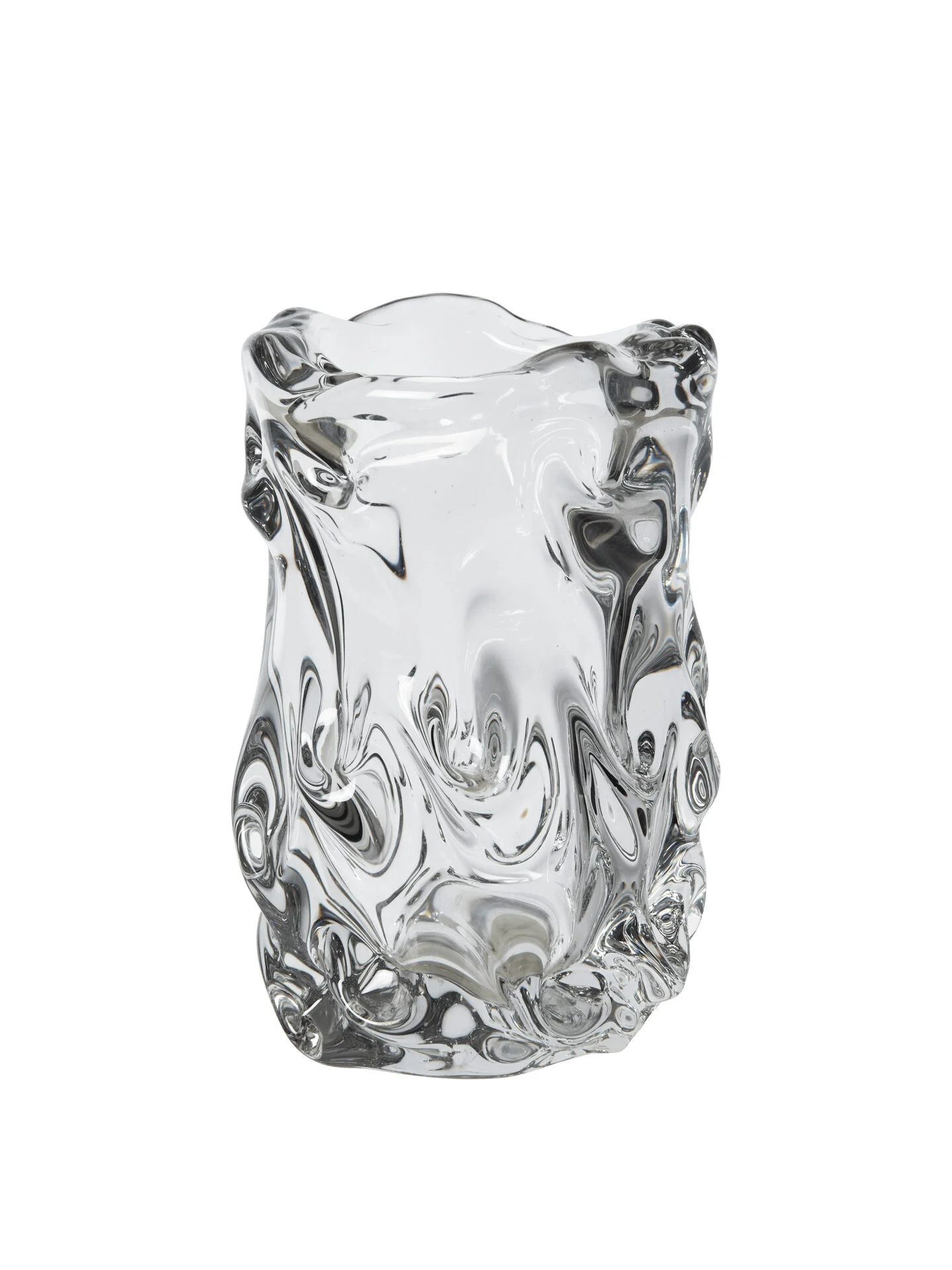 Virelle Vasen är tillverkad av munblåst glas och har en form som fångar upp mjuka rörelser. Den böljande silhuetten framkallar känslan av svall och vibrationer och ger en flytande, skulptural närvaro i rummet. Den genomtänkta vasen tillför en lugn känsla av rörelse till ditt rum.