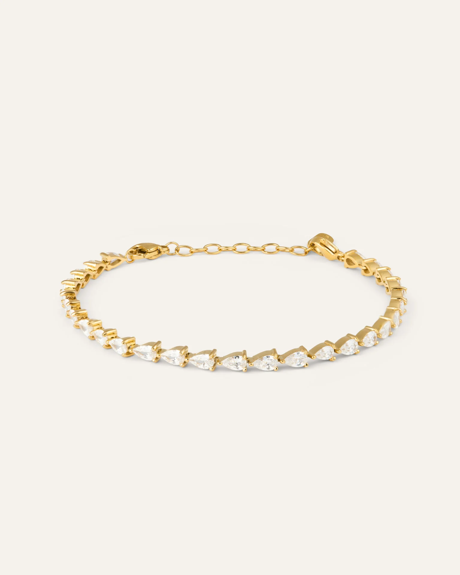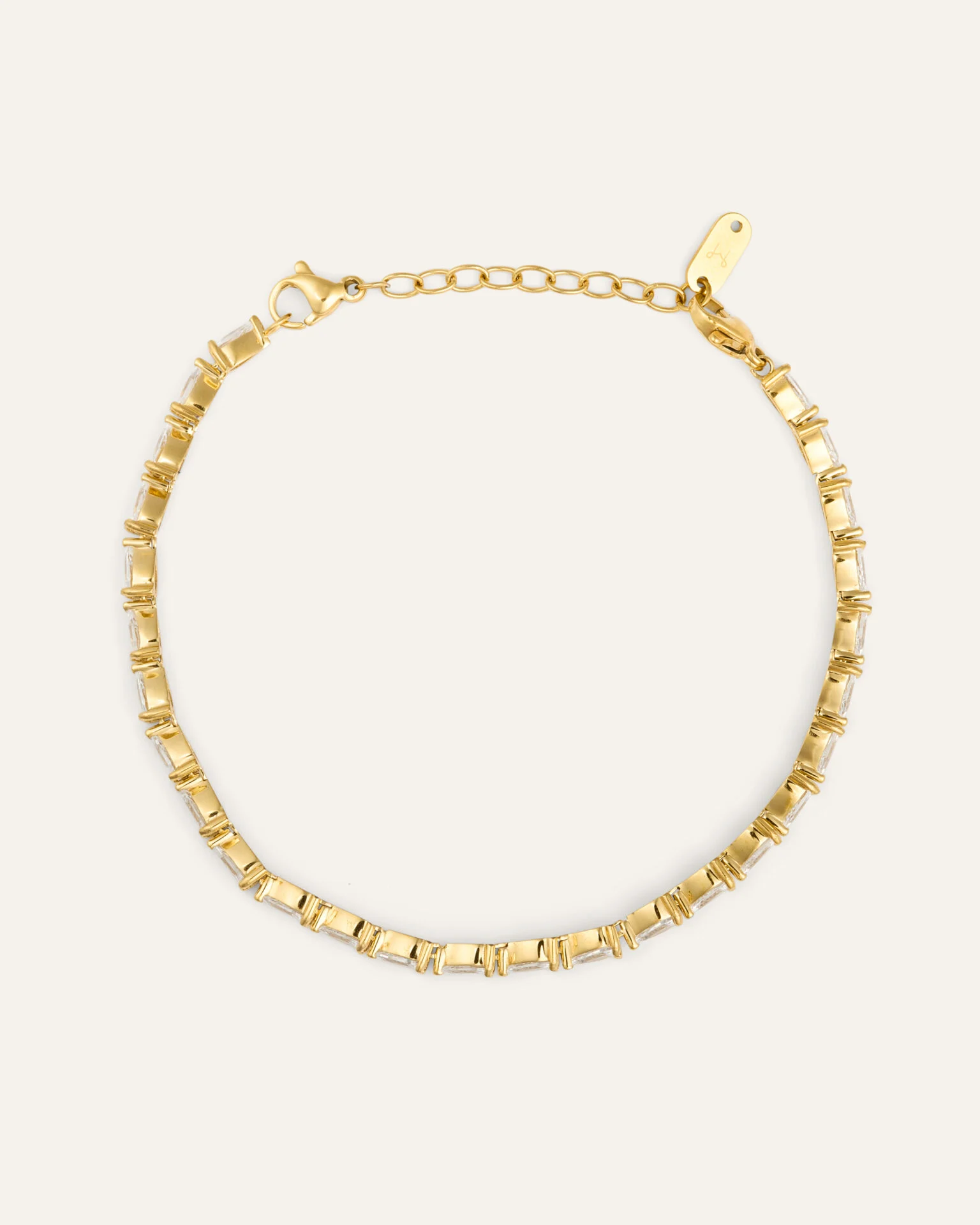 Zina Gold Bracelet är ett nätt, men ändå iögonfallande armband i polerat rostfritt stål. Raden av små, fasettslipade stenar fångar ljuset och ger en fin, diskret glans runt handleden. Armbandet sitter tätt intill huden, är lätt och bekvämt att bära – perfekt att kombinera med andra kedjor eller solo för en stilren look.
