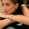 Zina Steel Bracelet är ett nätt, men ändå iögonfallande armband i polerat rostfritt stål. Raden av små, fasettslipade stenar fångar ljuset och ger en fin, diskret glans runt handleden. Armbandet sitter tätt intill huden, är lätt och bekvämt att bära – perfekt att kombinera med andra kedjor eller solo för en stilren look.